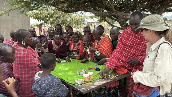 One of the elders of this co-op, Nakaaki Kioki, had come to our camp the night before to tell us a traditional story. She had been a midwife in her younger days and had delivered the very man who was her interpreter. When we asked how many babies she had brought into the world, Kioki explained with a smile that such statistics are not kept because the Maasai don't have a written language. Birthdays to them are meaningless. More important is the Irmegoliki ceremony, in which prayers and songs mark the passage of men through the social stages of the community.